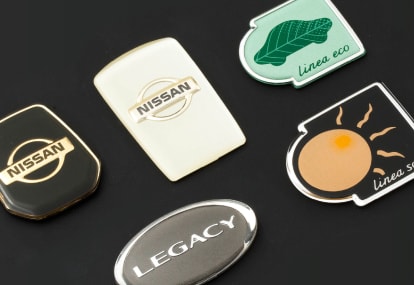 介绍新光铭牌的各种产品,包括主营业务的车标和其他树脂成型制品。